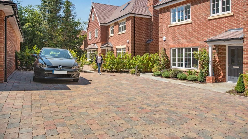 Constraint: Resin-bound surfacing may be too smooth; a modular paver with high-friction joints is selected for vehicular safety.
