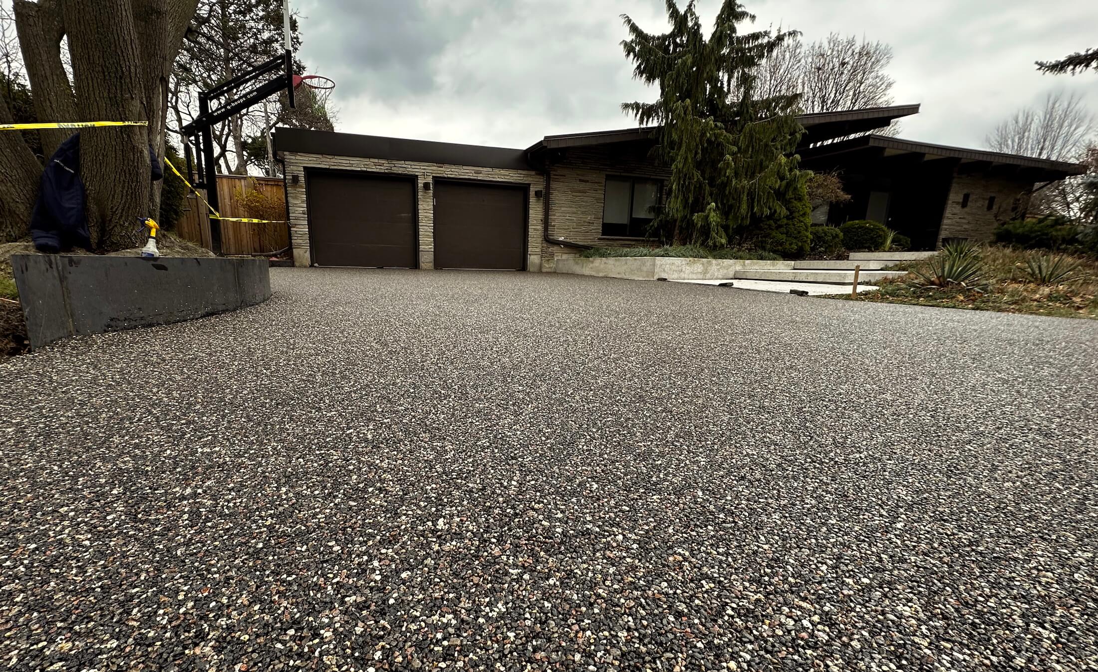 | Resin-Bound Aggregate | Moderate | High (20-30%) | Moderate | Power Wash / Vac |
